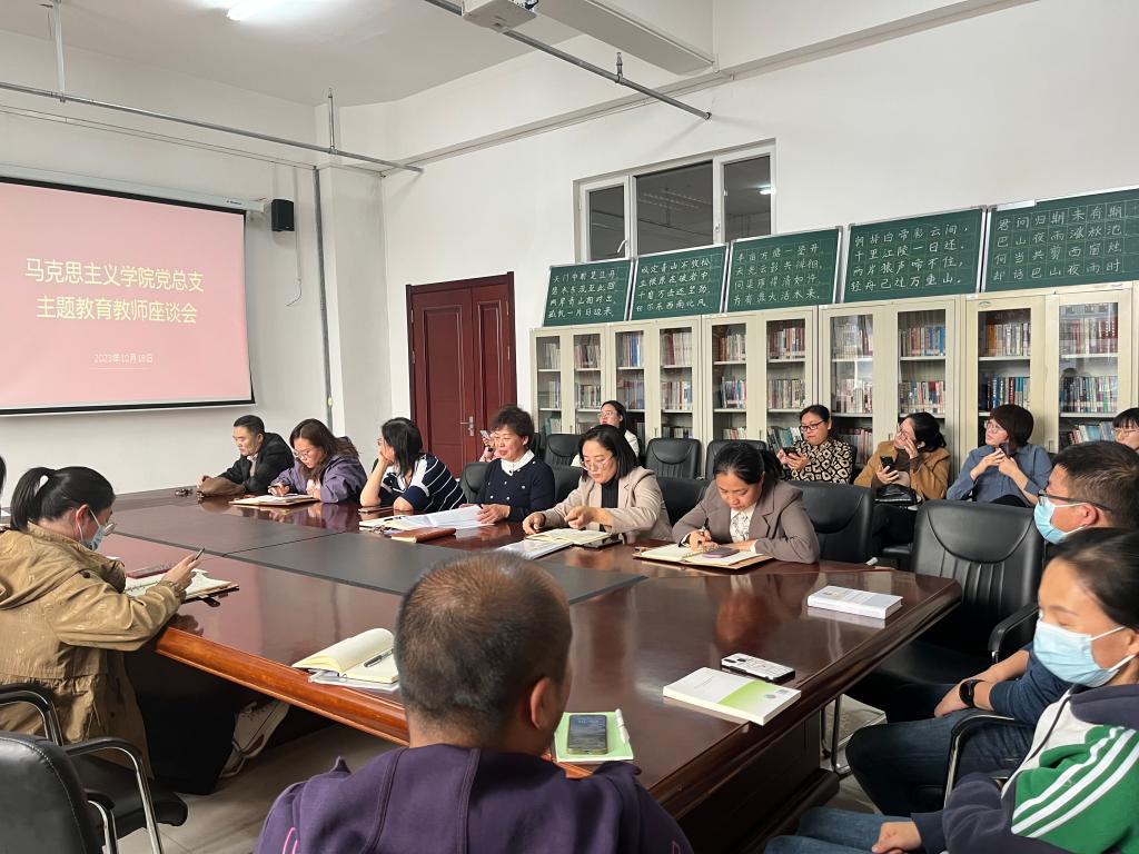 为推动学习贯彻习近平新时代中国特色社会主义思想主题教育走深走实,推动全体党员当好贯彻落实习近平新时代中国特色社会主义思想的执行者、行动派、实干家,10月18日下午万象城娱乐awc线路党总支在崇文楼B座123会议室召开主题教育教师座谈会,学院全体教师参加会议。