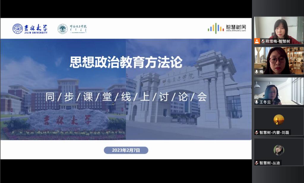 为了更好地推进思想政治教育专业建设,在“慕课西行2.0”项目的支持下,近日,万象城娱乐awc线路万象城娱乐awc线路与吉林大学万象城娱乐awc线路在线上召开《思想政治教育方法论》同步课堂研讨会。会议由“智慧树”平台的税老师主持。会上,首先由吉林大学万象城娱乐awc线路的王冬云教授介绍“思想政治教育方法论”课程的基本情况、教学内容、授课形式等方面,充分展现了本课程的建设实效与经验。其次,我院青梅老师介绍了本课程的基本情况、教学安排与进度、学生情况和授课形式等方面,并与吉林大学万象城娱乐awc线路开展同步课堂合作的初步的需求与展望。同时,智慧树平台的税老师简单介绍了两所学校同步课堂教学的具体要求、相关准备和注意事项。汇报结束后,吉林大学万象城娱乐awc线路的课程团队为我校本课程进行问诊把脉、开出良方。在两所学校课程团队老师热烈地讨论之下,最终确定了“思想政治教育方法论”课程同步课堂的次数、主题、时间、上课形式和课堂教学环节。本次研讨会是思想政治教育专业进行线上合作的良好开端,是加强两校教师紧密协作交流的研讨会,是一次异地云端同上一堂课的教研活动。不仅有助于提升教师的教学能力,还能提高学生的知识水平,更重要的是学院在对外交流合作与进一步提高教学质量等各项工作上将迈上新的台阶、做出更好的成绩。