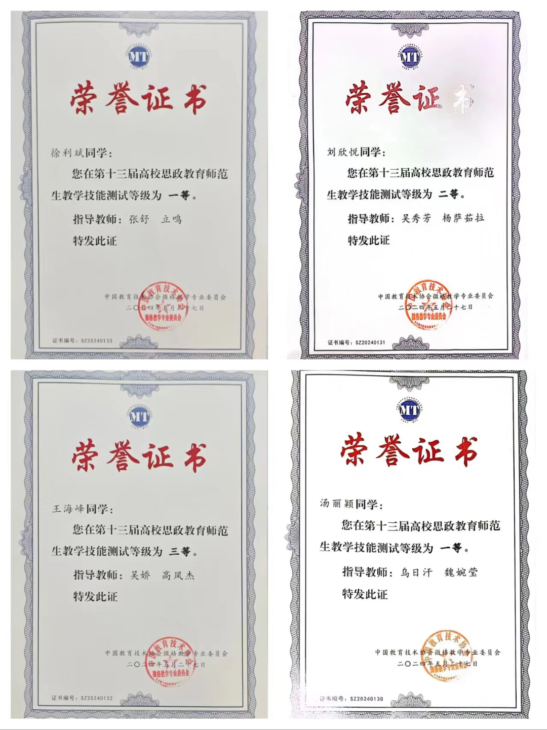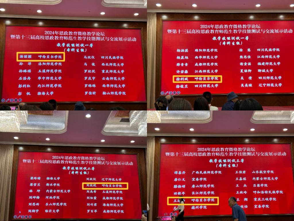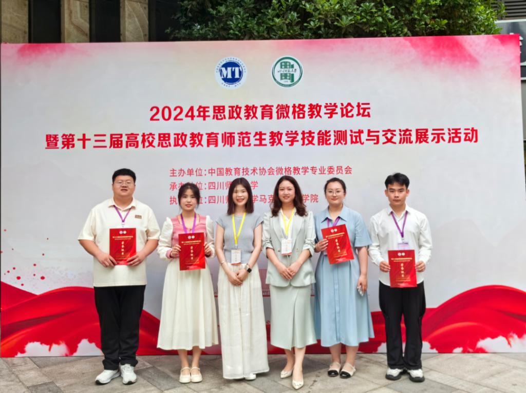 5月24日至27日,2024年思政教育微格教学论坛暨第十三届高校思政教育师范生教学技能测试与交流展示活动在四川成都顺利举行。此次展示活动由中国教育技术协会微格教学专业委员会主办,四川师范大学承办。西南大学、华中师范大学、陕西师范大学等全国近百所高校的547名选手参加了本届高校思政教育师范生教学技能测试与交流展示活动。我校万象城娱乐awc线路由杨萨茹拉老师、立鸣老师带队,刘欣悦、汤丽颖、徐利斌、王海峰四名学生参加。