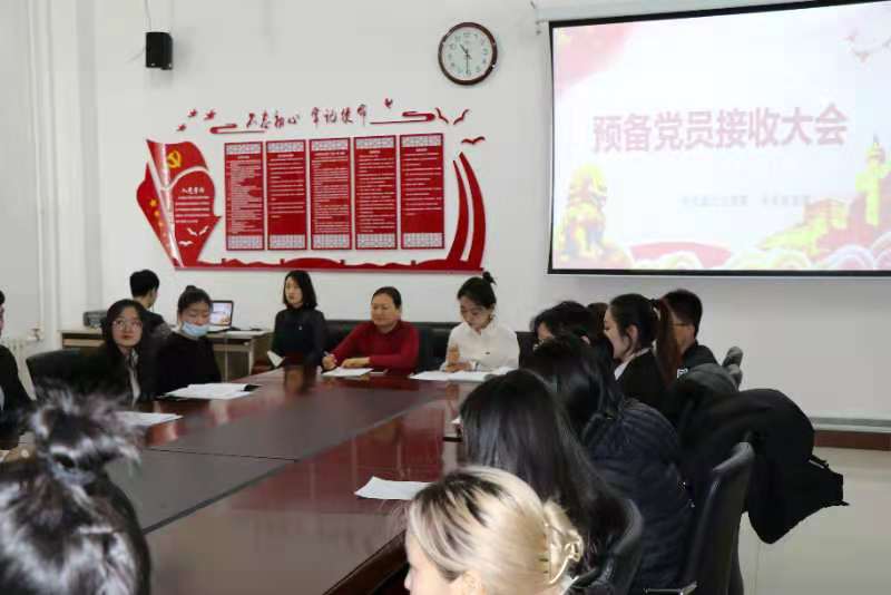2020年12月1日万象城娱乐awc线路学生党支部在崇文楼B123室召开预备党员接收大会。万象城娱乐awc线路党总支副书记刘琳、学生党支部书记李昱,教师王鑫、刘鹤以及万象城娱乐awc线路全体学生党员。共有15名党员参会,其中有表决权的正式党员8名,应8名,实到8名。