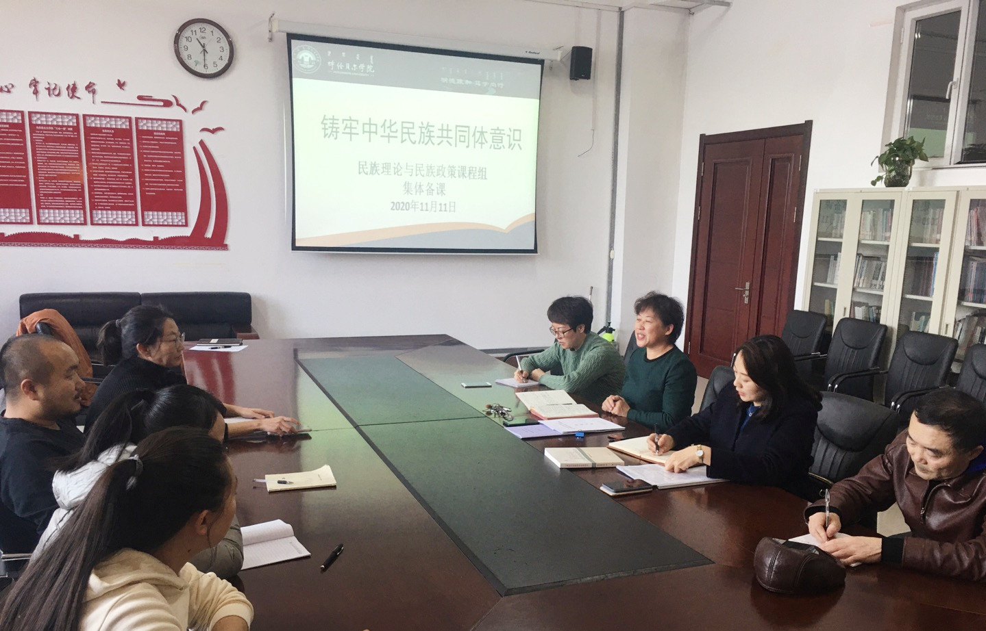 为推动中华民族共同体教育进课堂,引领各族学子深刻认识并领会中华民族共同体的形成和发展,不断铸牢中华民族共同体意识,2020年11月11日下午,万象城娱乐awc线路民族理论与民族政策课程组在崇文楼B123组织召开了以“铸牢中华民族共同意识”为主题集体备课会。会议由刘凤琴书记主持,李俏副院长及“民族理论与民族政策”课程组全体教师参加。