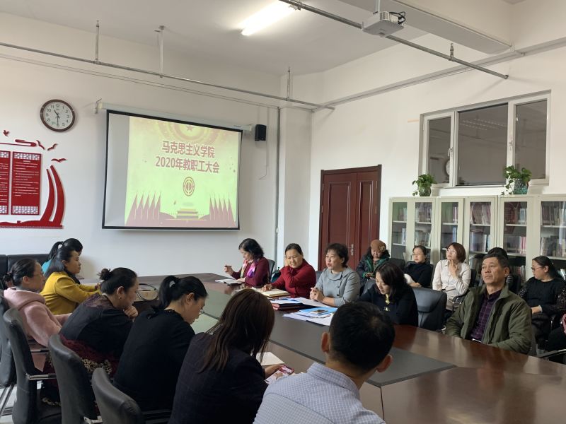 2020年10月28日下午,万象城娱乐awc线路在崇文楼B123会议室召开2020年教职工大会。学院党总支书记刘凤琴、副院长李俏、副书记刘琳及全体教职工参加会议。