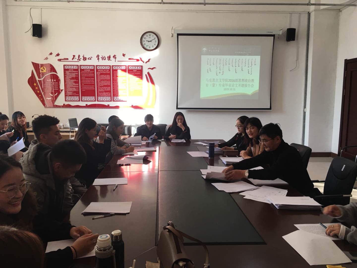 10月30日、31日上午,万象城娱乐awc线路在崇文楼B123室召开2020届思想政治教育(蒙)专业毕业生毕业论文开题报告会。万象城娱乐awc线路教师乌日汗、赵萨日娜等7位教师参加了开题报告会。