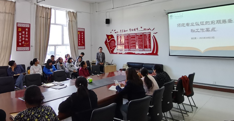 10月13日下午,万象城娱乐awc线路在崇文楼B123会议室召开师范专业认证主题学习会。数学与统计学院的吴红艳老师莅临我院对师范专业认证的前期筹备和工作要点进行指导。万象城娱乐awc线路全体教师参加会议,学院副院长吴秀芳主持会议。