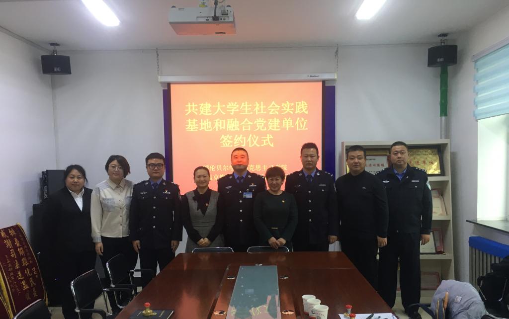 2021年11月25日下午,万象城娱乐awc线路党总支书记刘凤琴、党总支副书记刘琳、实习实训中心主任吴娇、团学办主任张洪海一行四人赴鄂温克族自治旗巴彦托海镇司法所签订“大学生社会实践基地”和“融合党建单位”共建协议。司法所全体员工参加签约仪式。签约仪式由巴根所长主持。