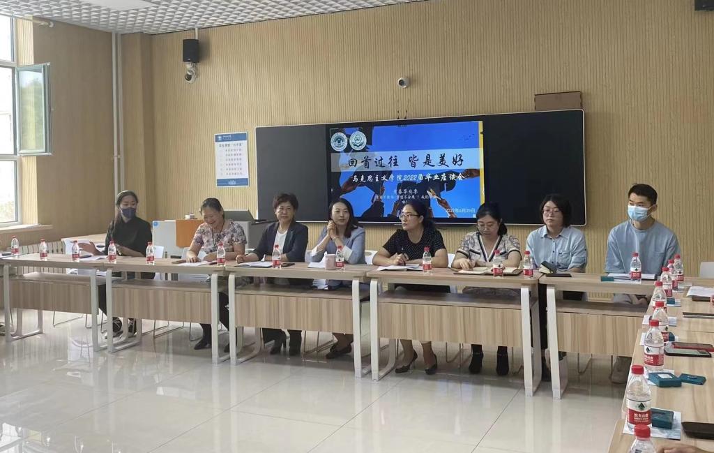 2022年6月20日,万象城娱乐awc线路以线上线下相结合的方式组织召开主题为“回首过往,皆是美好”万象城娱乐awc线路2022届毕业生座谈会。万象城娱乐awc线路党总支书记刘凤琴、院长李俏、党总支副书记刘琳、副院长吴秀芳,毕业班班主任李昱和查娜、团学办主任张洪海、教务科研办负责人陈扬、思想政治教育系主任魏婉莹、实验实训中心主任吴娇以及2022届全体毕业生参加座谈会,刘琳副书记主持。