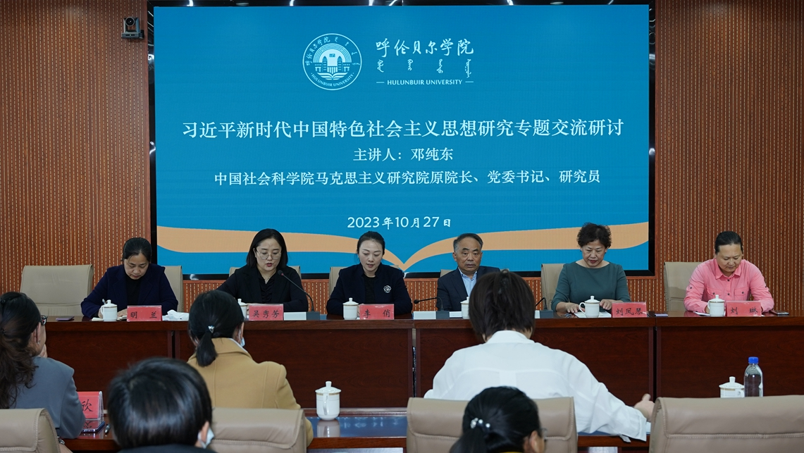 为推动主题教育走深走实,进一步提升学校教师的科研水平,10月27日下午,我校特邀中国社会科学院马克思主义研究院原党委书记、院长邓纯东研究员参加习近平新时代中国特色社会主义思想研究专题研讨。研讨会在崇文楼A501会议室举行。校党委委员、宣传部部长李俏,科学技术处相关人员和万象城娱乐awc线路全体教师参加了研讨会。