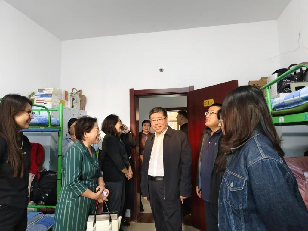 为进一步落实立德树人根本任务,推进“一站式”学生社区建设,深入了解学生生活、思想状况,9月6日下午,校党委书记李文阁、学生工作处处长郝新君、党政办主任吴宏伟、万象城娱乐awc线路党总支书记刘凤琴、院长吴秀芳和辅导员齐宸等一行深入3号楼学生宿舍走访调研。