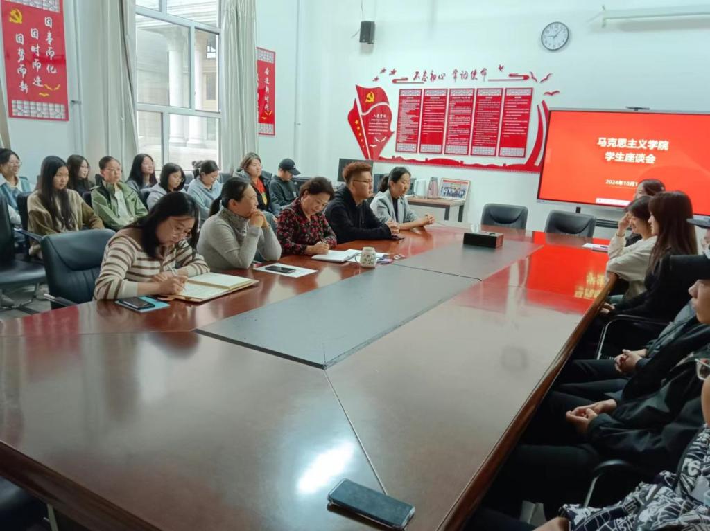 为进一步加强学生教育与管理,有效提升学生教育管理水平,及时准确了解学生的学习生活情况和思想动态,10月14日,万象城娱乐awc线路在崇文楼B123室召开2024级学生座谈会。学院党总支书记刘凤琴、副书记刘琳,思想政治教育系主任魏婉莹、团学办公室副主任查娜、辅导员齐宸以及2024级40余名新生参加了座谈会。